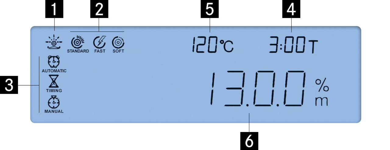 • Waageninterner Speicher für den automatischen Ablauf von 15 Trocknungsprogrammen und 5 durchgeführten Trocknungsprozessen