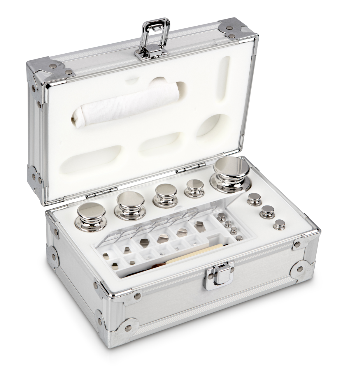 E2 1 mg – 500 g Gewichtsatz im Aluminiumetui, Edelstahl poliert