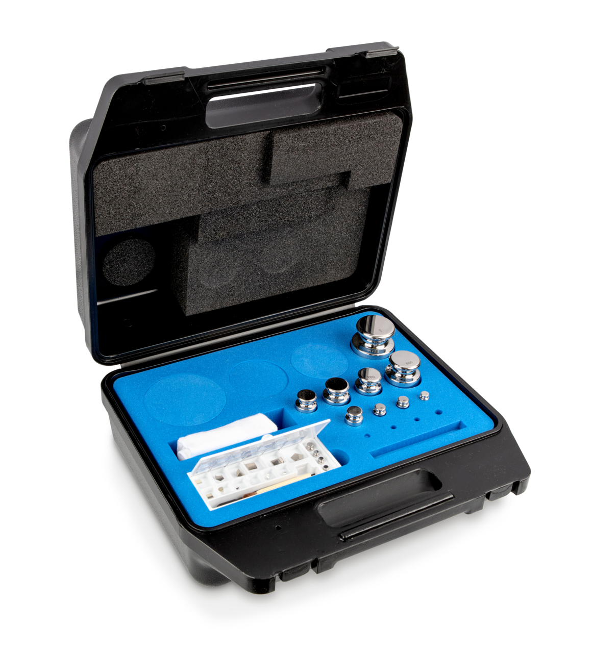 Gewichtsatz 323-064 (OIML-Klasse F1, Nennwert 1 mg – 1 kg, Knopf, Edelstahl poliert, im Kunststoffkoffer)