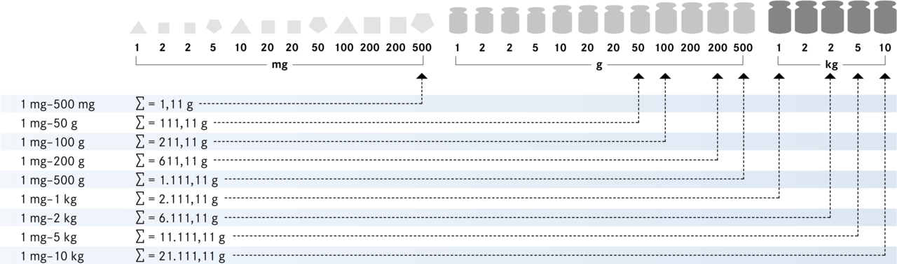Gewichtsatz 324-05 (OIML-Klasse F1, Nennwert 1 g – 500 g, Knopf, Edelstahl poliert, im Holzetui)