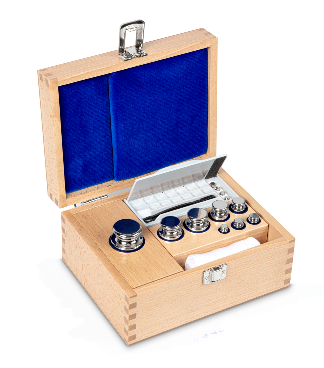 Gewichtsatz 324-06 (OIML-Klasse F1, Nennwert 1 g – 1 kg, Knopf, Edelstahl poliert, im Holzetui)