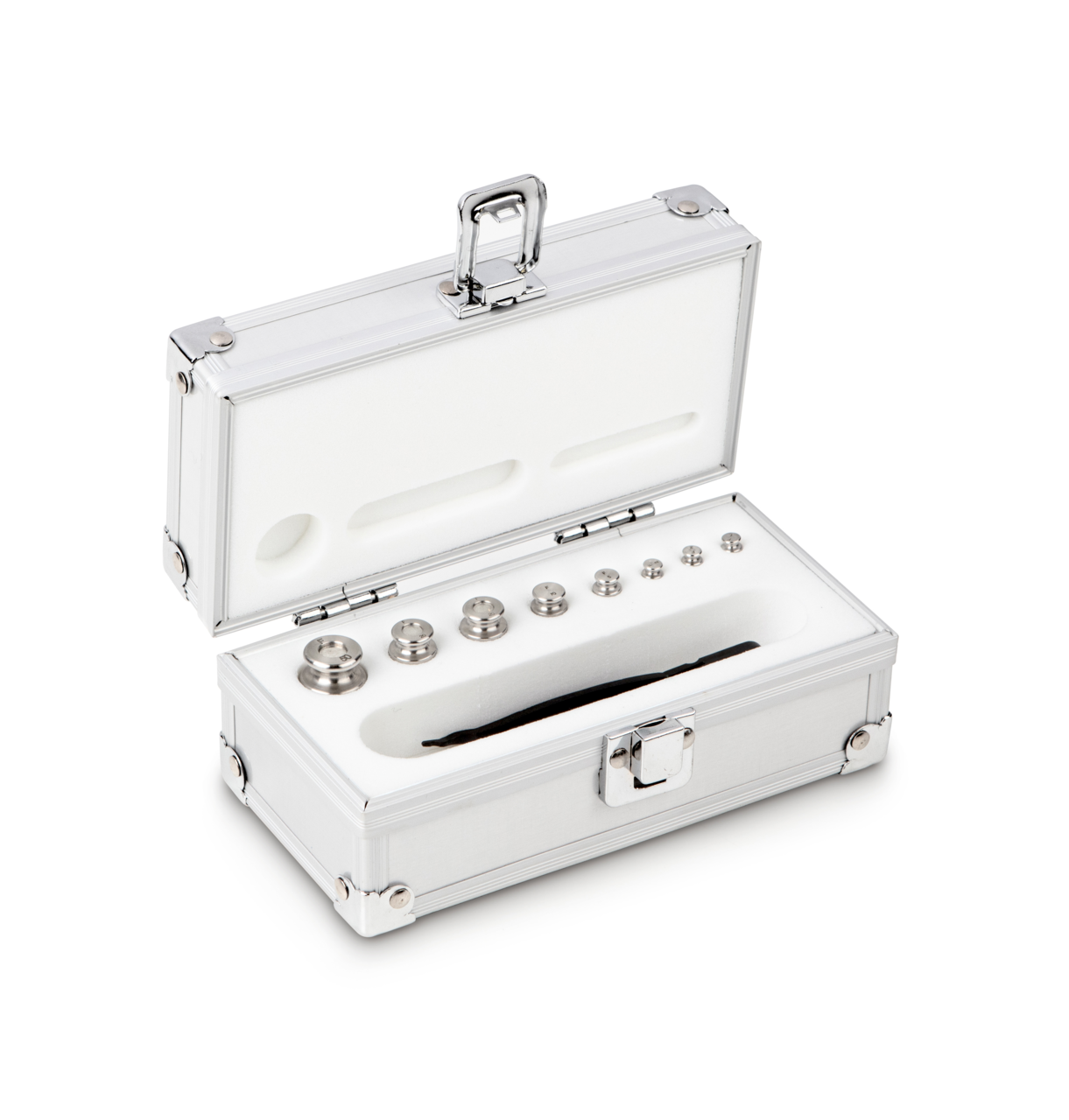 F2 1 g – 50 g Gewichtsatz im Aluminiumetui, Edelstahl feingedreht