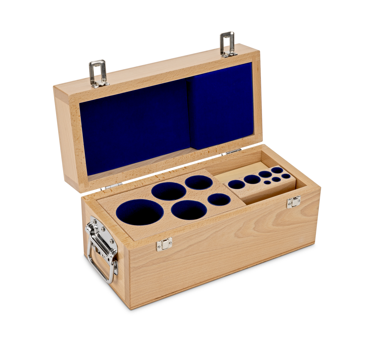 Holz-Gewichtsetui 313-080-100 (für Nennwerte 1 mg – 5 kg | für Klassen E1+E2+F1 | für Bauform Knopf/Kompakt)
