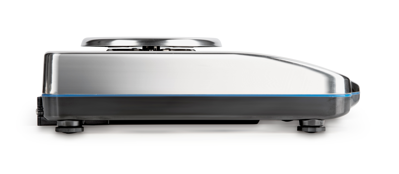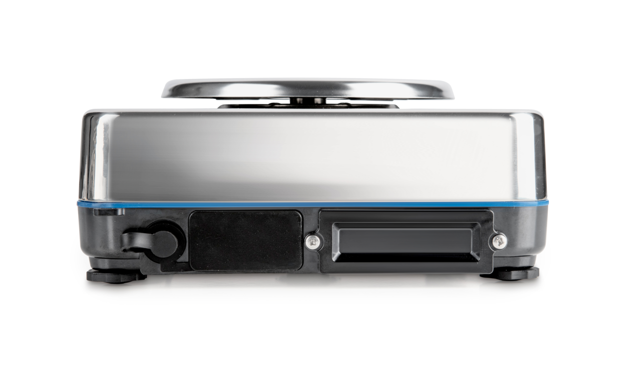 - Edelstahlausführung von Gehäuse und Wägeplatte, dadurch rostfrei und dank glatter Flächen einfach zu reinigen