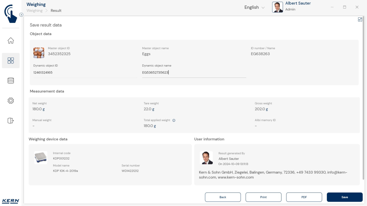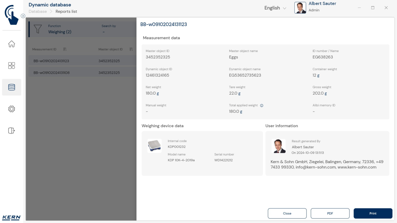 • Multi-Gerätenutzung/-verwaltung: Es ist möglich, während eines Arbeitsvorgangs zwischen verschiedenen Waagen auszuwählen, also z. B. zwischen hochlastige Waagen für grobe Messungen und Präzisionswaagen für feine Messungen (Wiegesystem/Zählsystem). Die Messergebnisse aller Waagen werden in einem einheitlichen Ergebnisprotokoll gespeichert, einschließlich deren Herkunft (Normkonformität 21 CFR Part 11, u. a.)
