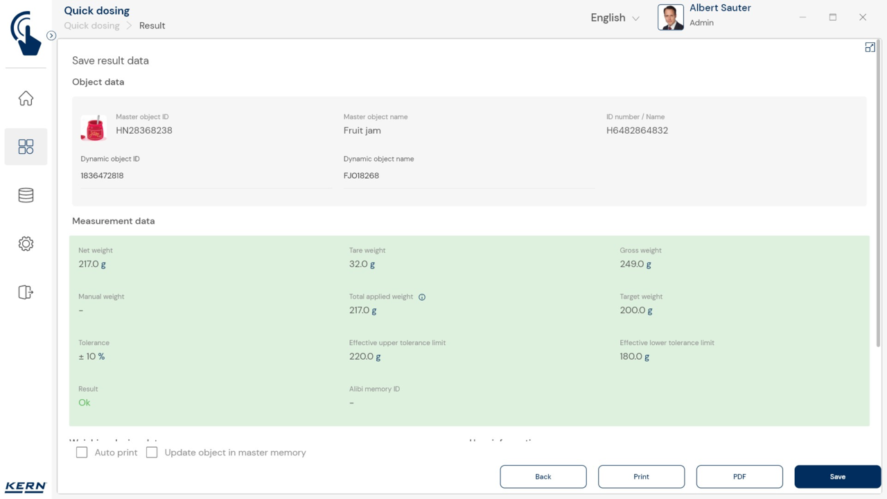 – Nutzer-basierte Druckfunktion: Damit besteht die Möglichkeit, verschiedenen Benutzergruppen verschiedene Druckprotokolle zuzuordnen – und dies für dieselbe Applikation. Als Beispiel kann die Stückzählfunktion für Benutzer-Rolle A einen umfangreichen Ausdruck hinterlegt haben und für Benutzer-Rolle B einen sehr kompakten Ausdruck