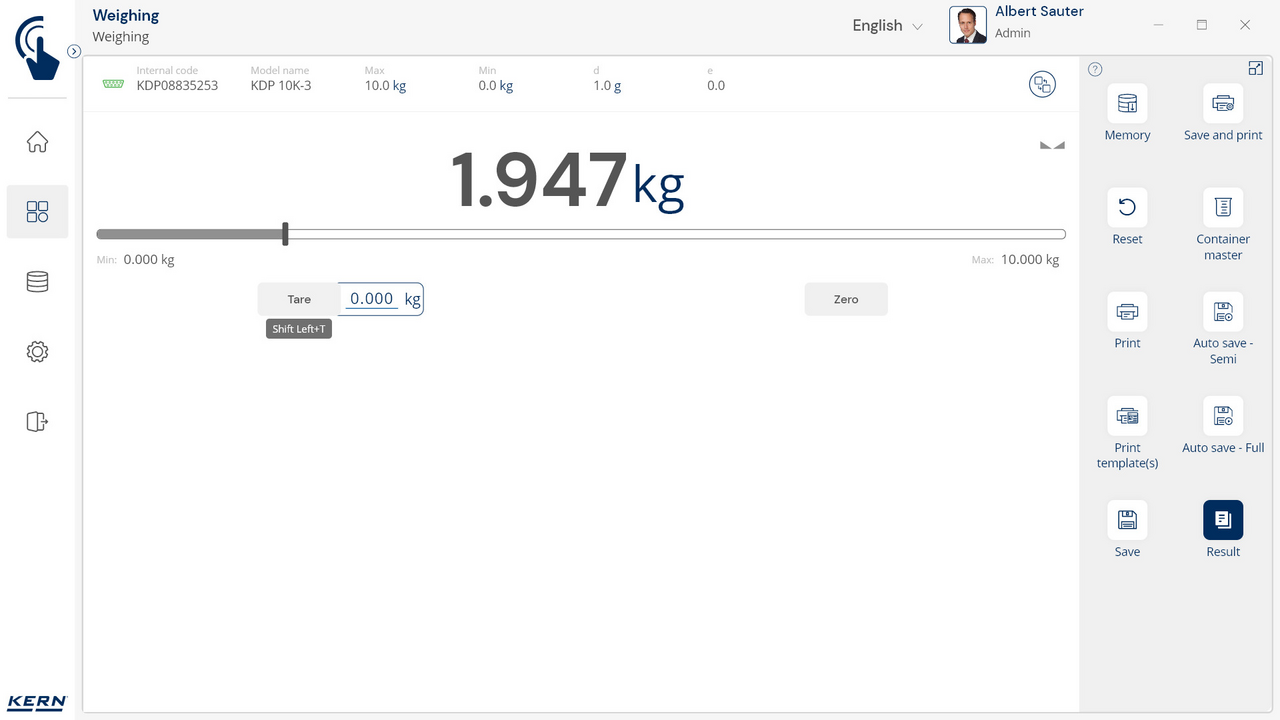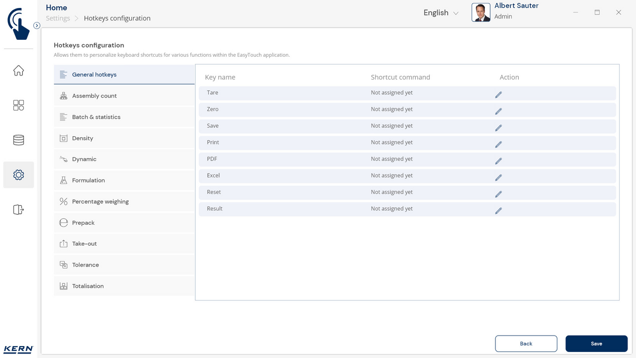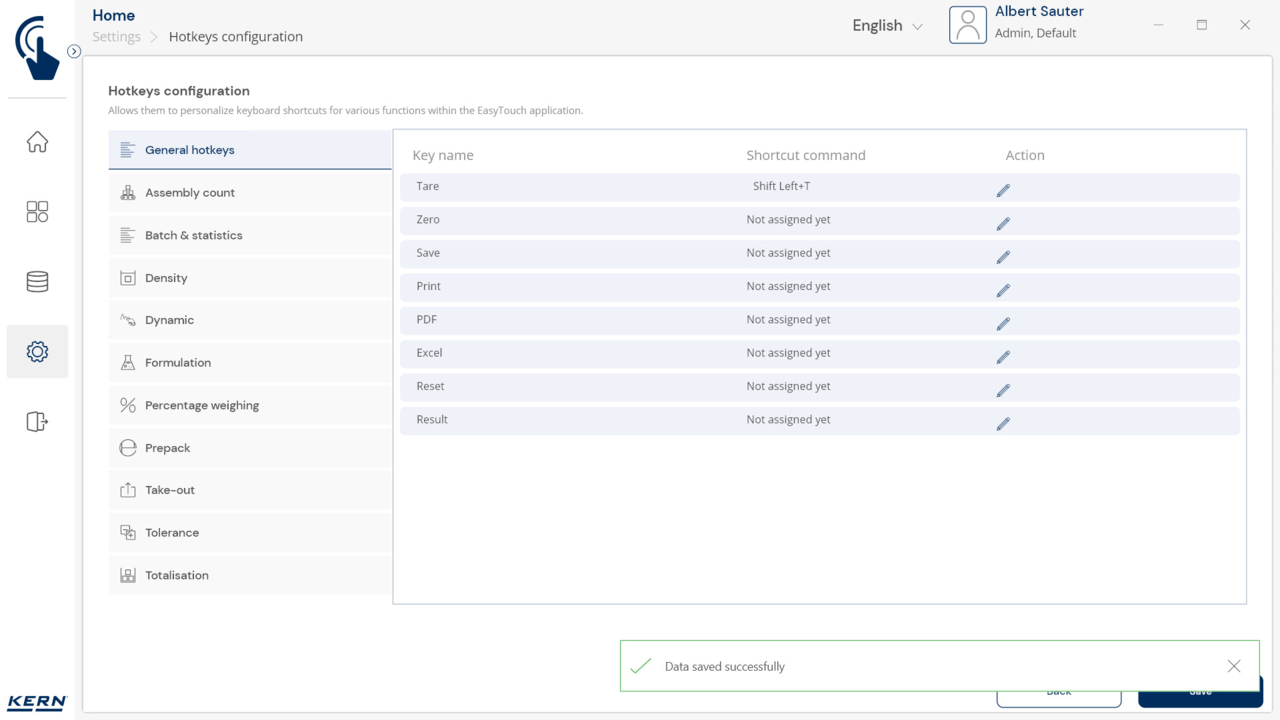 - Vielseitige Hotkeys-Auswahl: In EasyTouch können nicht nur spezifische Aktionstasten für bestimmte Funktionen, sondern auch allgemeine Tastenbefehle wie „Speichern“ oder „Tara“ als Hotkeys definiert werden. Diese sind dann in allen EasyTouch Funktionen anwendbar