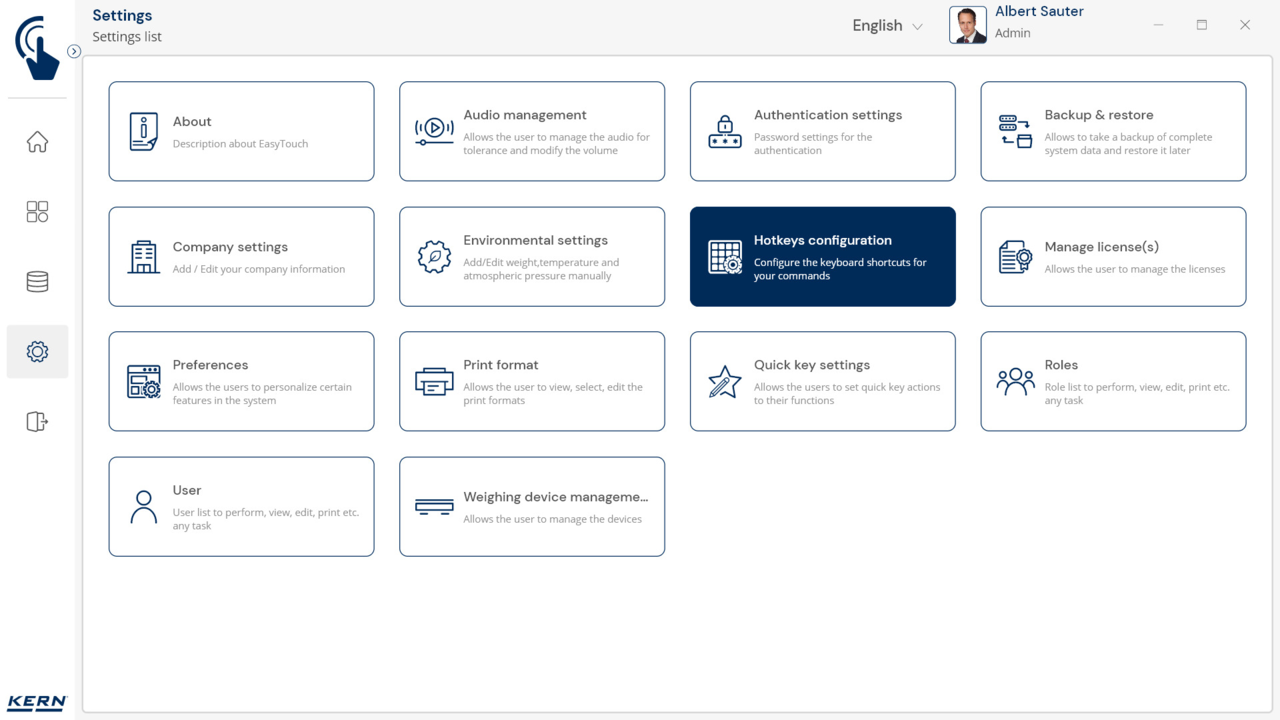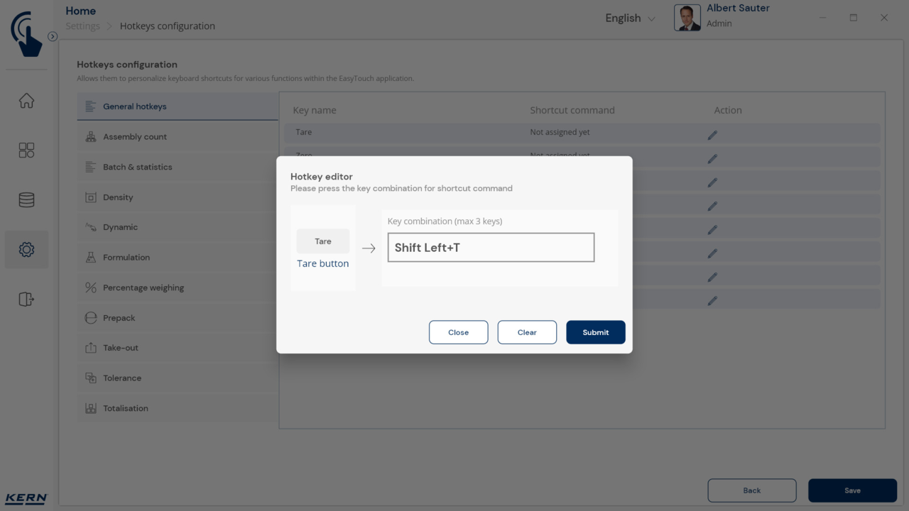 Software KERN EasyTouch SET-411 Hotkeys