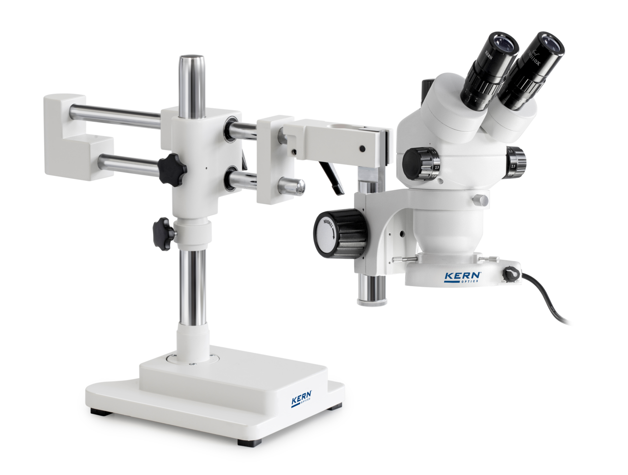 KERN Stereo-Zoom Mikroskop-Set OZM 923UK (Trinokular, Universal (Kugelgelagerter Doppelarm mit Platte), 0,7 x – 4,5 x, 4,5W LED (Auflicht))