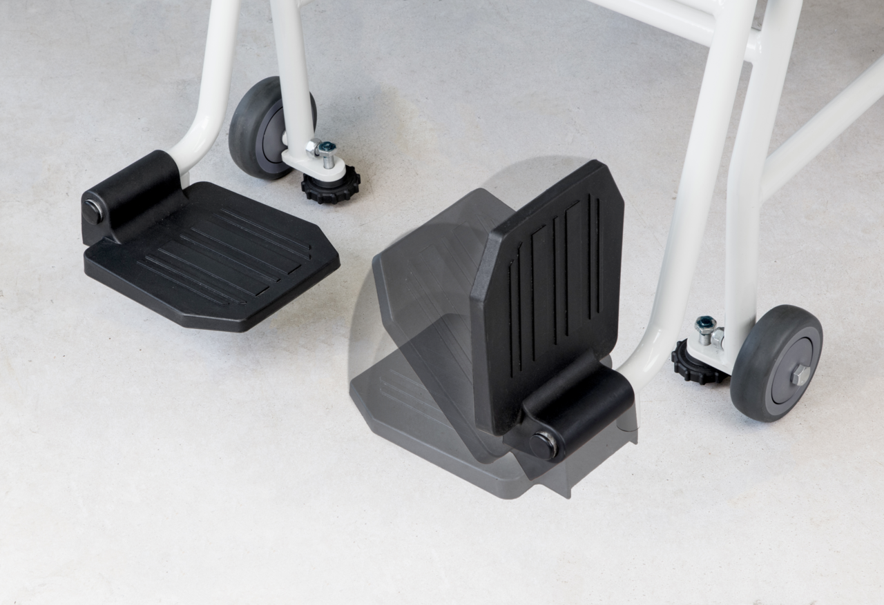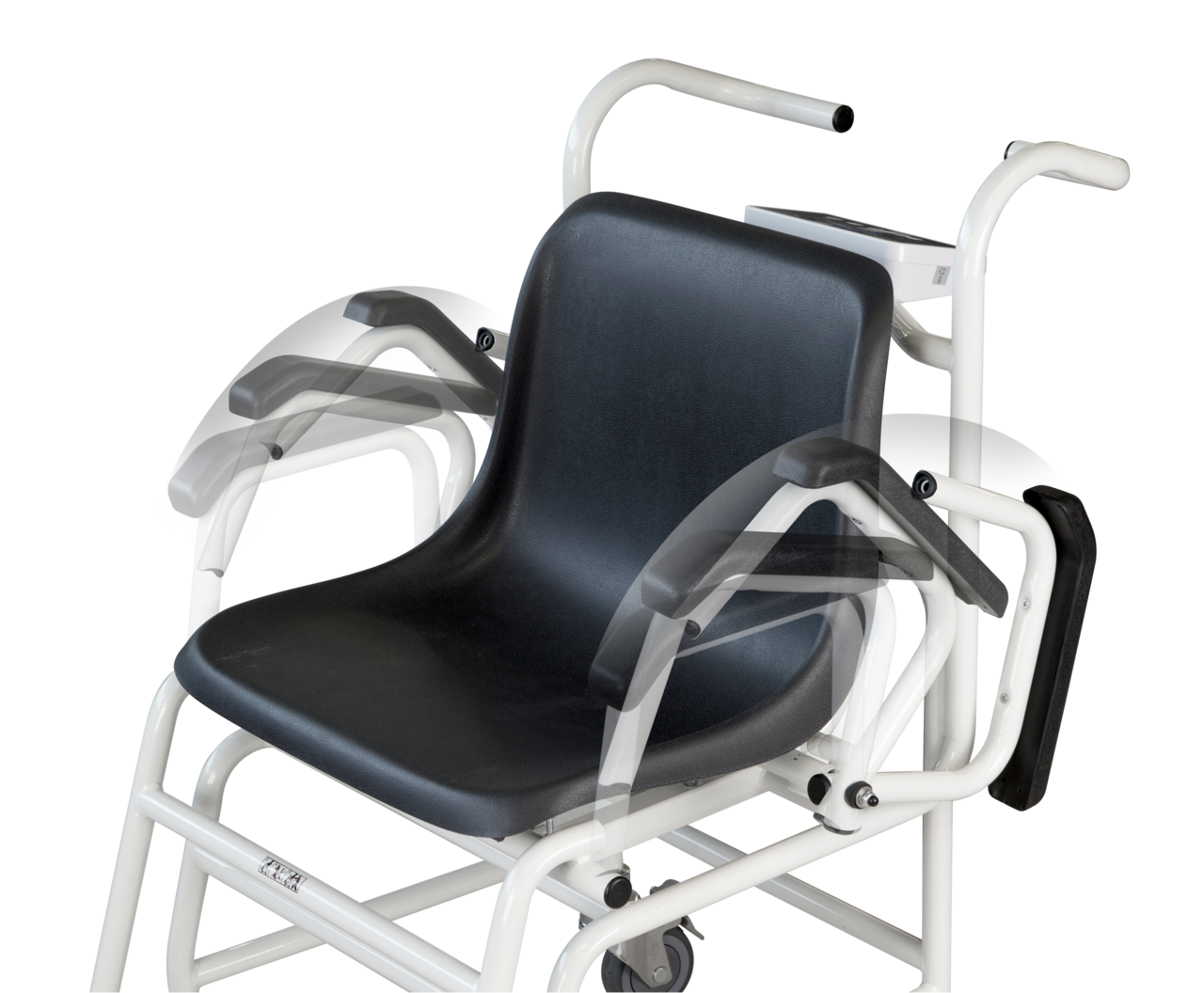 - Zwei umklappbare Armlehnen und Fußstützen erleichtern das Platznehmen. Ideal für übergewichtige Patienten oder zum barrierefreien Umsetzen z. B. vom Bett auf die Stuhlwaage
