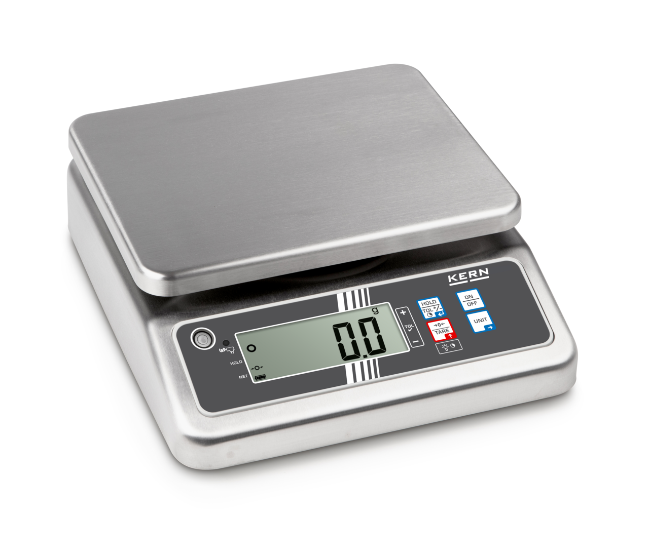 - Edelstahlausführung von Gehäuse und Wägeplatte, dadurch rostfrei und dank glatter Flächen einfach zu reinigen