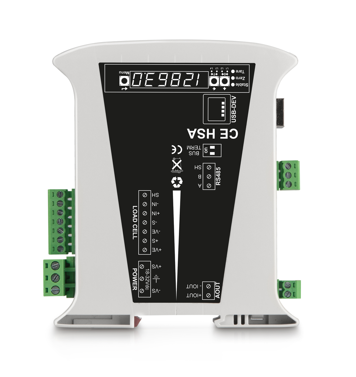 - Kompaktes Auswertegerät für das Erfassen von Wägedaten mittels DMS-Wägezellen z. B. in industriellen Anwendungen