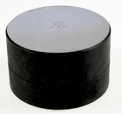 Prüfblock Typ D/DC, Genauigkeit ≥ 4 HL, Ø 90 mm (± 1 mm), Nettogewicht ca. 2,7 kg, Härtebereich 530 ± 40 HL