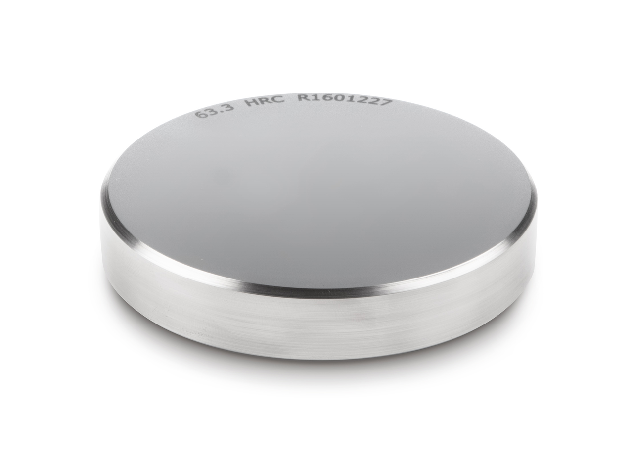Kalibrier- und Justierplatte (Härtevergleichsplatte) mit definierten und geprüften Stahlhärten zur regelmäßigen Prüfung und Einstellung von Härteprüfgeräten
