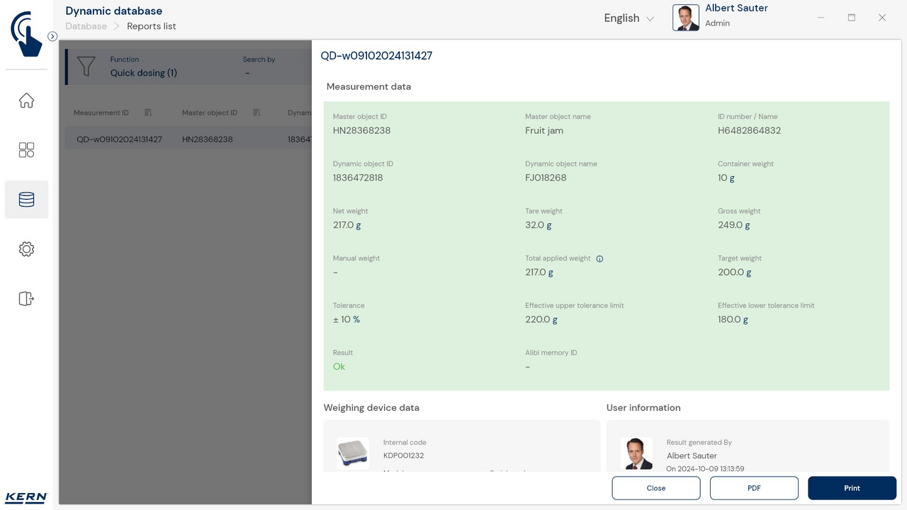 – Nutzer-basierte Druckfunktion: Damit besteht die Möglichkeit, verschiedenen Benutzergruppen verschiedene Druckprotokolle zuzuordnen – und dies für dieselbe Applikation. Als Beispiel kann die Stückzählfunktion für Benutzer-Rolle A einen umfangreichen Ausdruck hinterlegt haben und für Benutzer-Rolle B einen sehr kompakten Ausdruck
