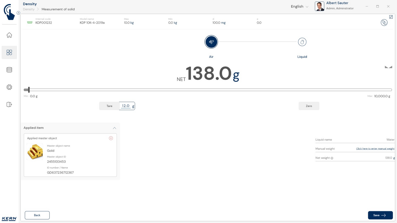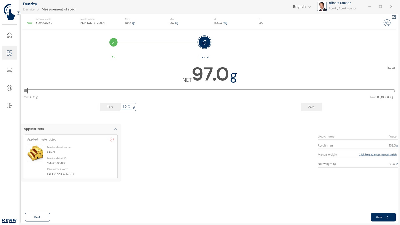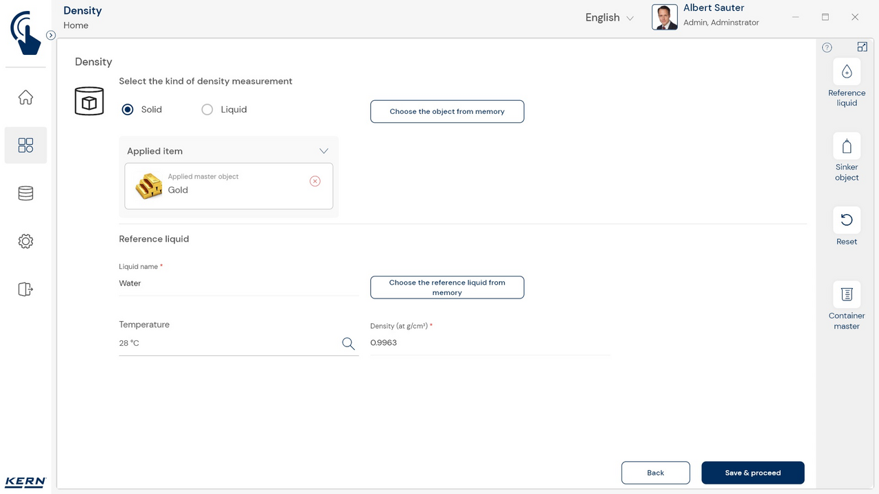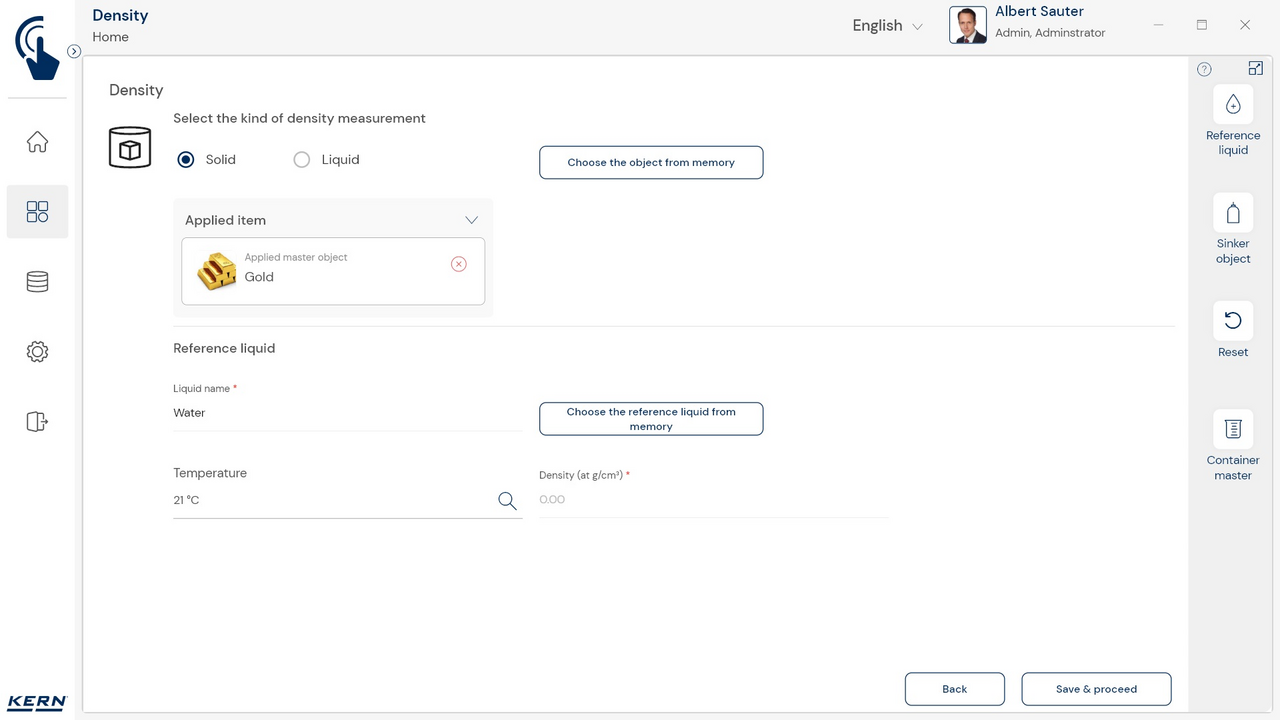 - Ein vordefinierter Workflow unterstützt den Benutzer beim schrittweisen Durchführen der Dichtebestimmung. Damit werden Fehler im Arbeitsablauf und Berechnungsfehler minimiert