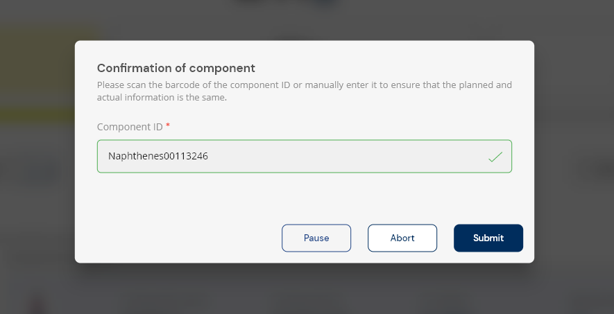 – Ideal für qualifizierte Prozesse (IQ, OQ, PQ), wie z. B. für Pharmaproduktion - Chargen-ID für Komponente