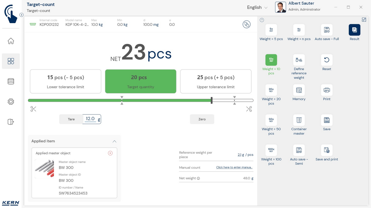 EasyTouch Target Count – Zielzählfunktion, KERN & SOHN Artikelnummer: SET-33