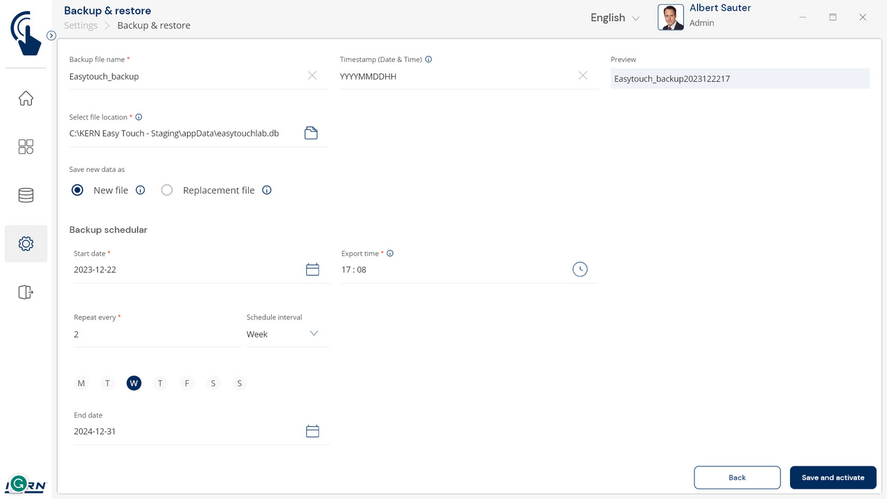 KERN EasyTouch TSET-46-A Backup Scheduler